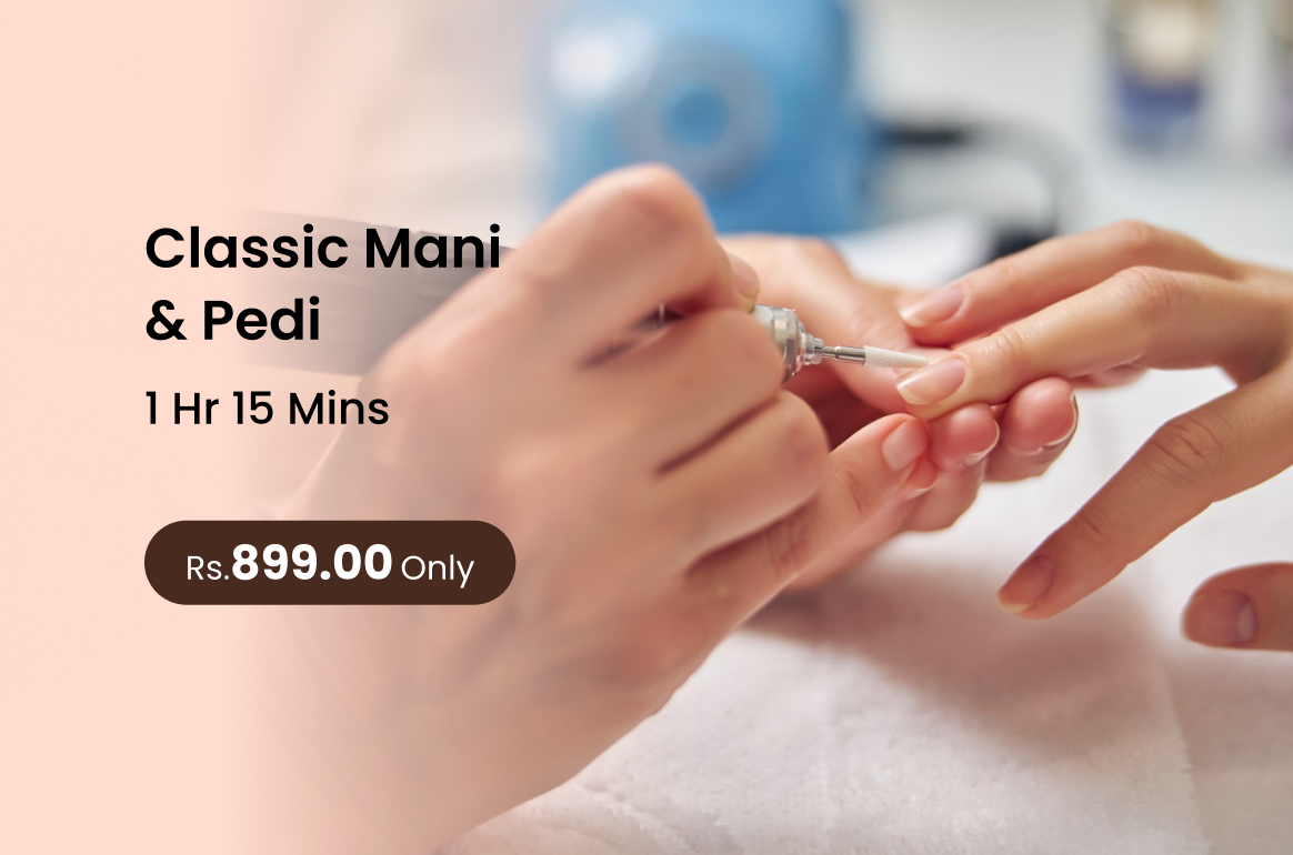 Classic Mani & Pedi shapes cleanses and pampers hands and feet leaving nails neat and skin soft and refreshed.