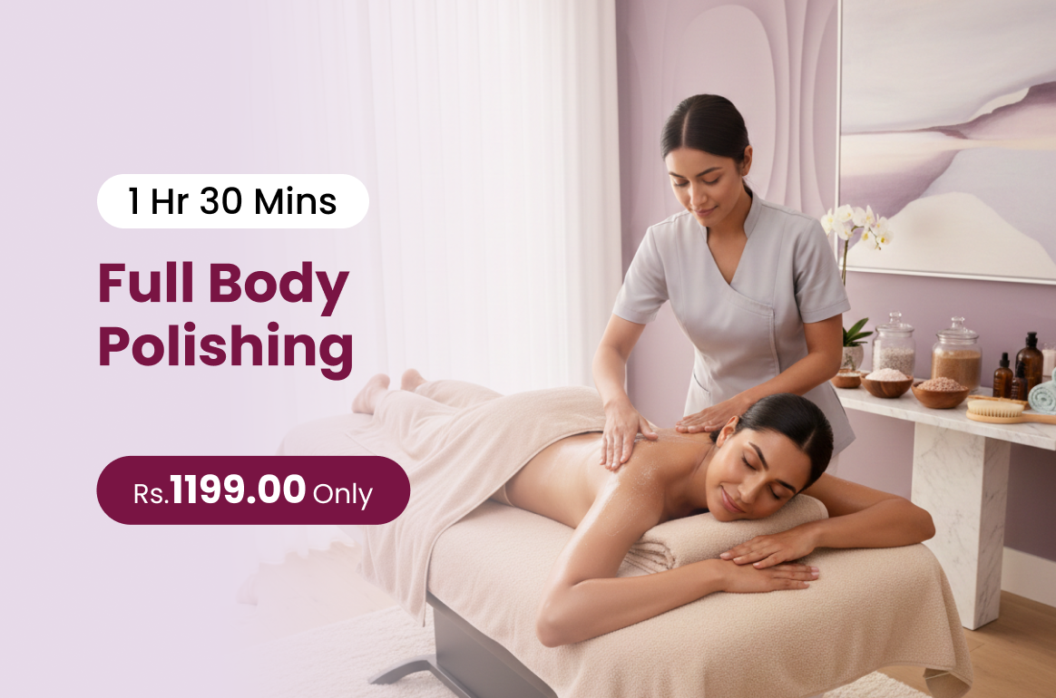 Full body polishing exfoliates and smooths the skin leaving it radiant soft and glowing.