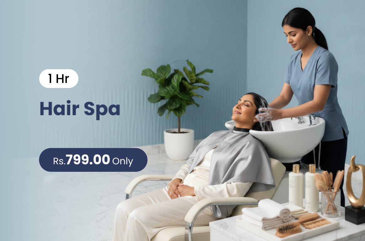 Hair spa nourishes and hydrates hair leaving it soft smooth and revitalized.