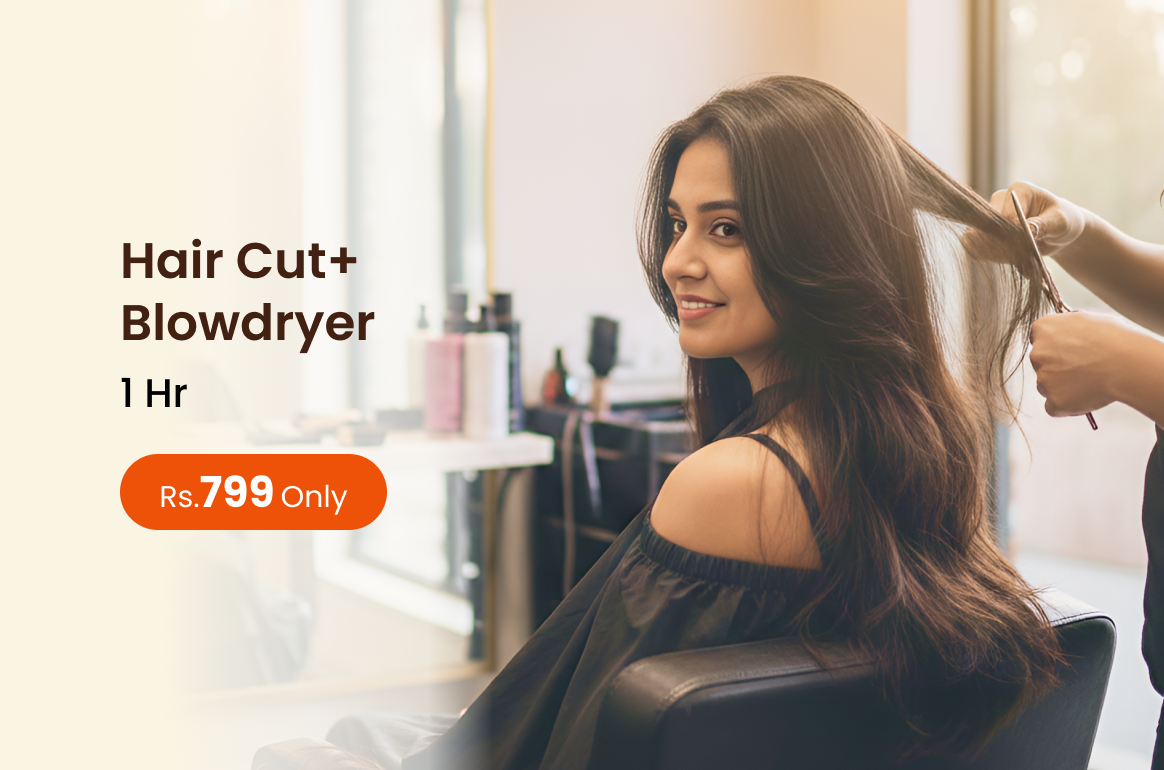 Hair Cut with blowdryer styling gives a fresh polished look by enhancing shape volume and smooth finish for beautifully styled hair.