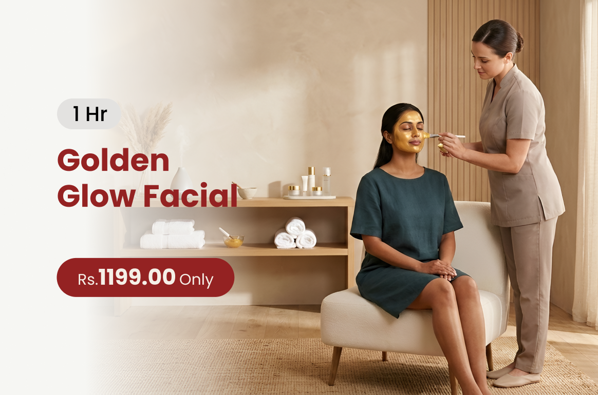 Golden Glow Facial rejuvenates your skin with deep cleansing and brightening treatments leaving a radiant luminous glow.