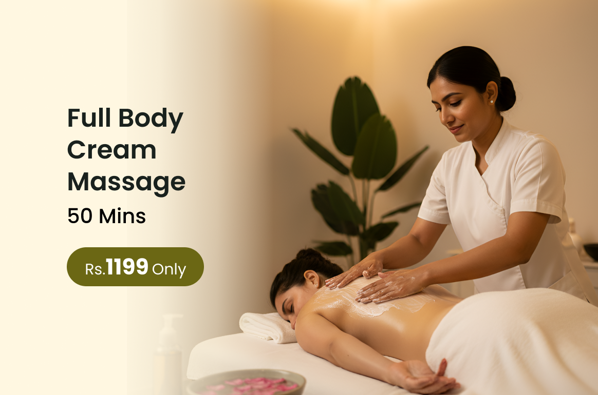 Full Body Cream Massage relaxes muscles and nourishes the skin leaving the body refreshed smooth and rejuvenated.