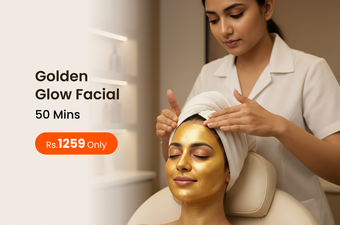 Golden Glow Facial rejuvenates the skin enhancing radiance and imparting a naturally healthy luminous glow.