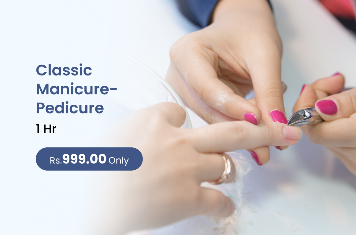Classic Manicure-Pedicure is a grooming treatment that cleanses shapes and nourishes nails while softening cuticles and rejuvenating hands and feet.