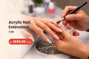 Acrylic Nail Extensions: Durable artificial nail enhancements created using acrylic powder and liquid to add length strength and a long-lasting polished look.