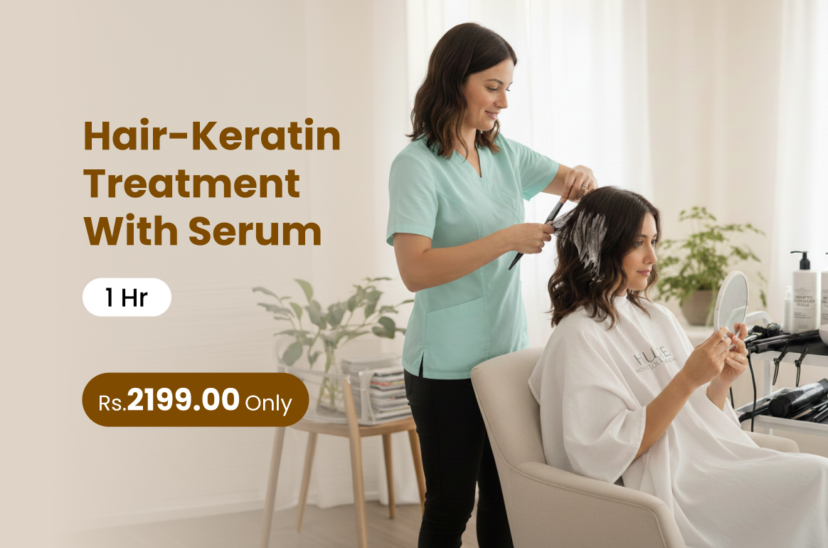 A hair keratin treatment with serum smooths frizz strengthens strands and adds lasting shine for sleek manageable hair.