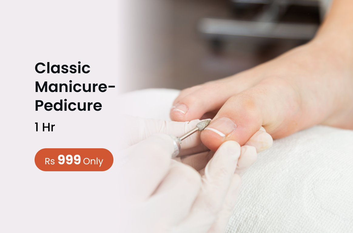 The Classic Manicure-Pedicure refreshes your hands and feet with essential grooming gentle exfoliation and relaxation for a clean polished look.