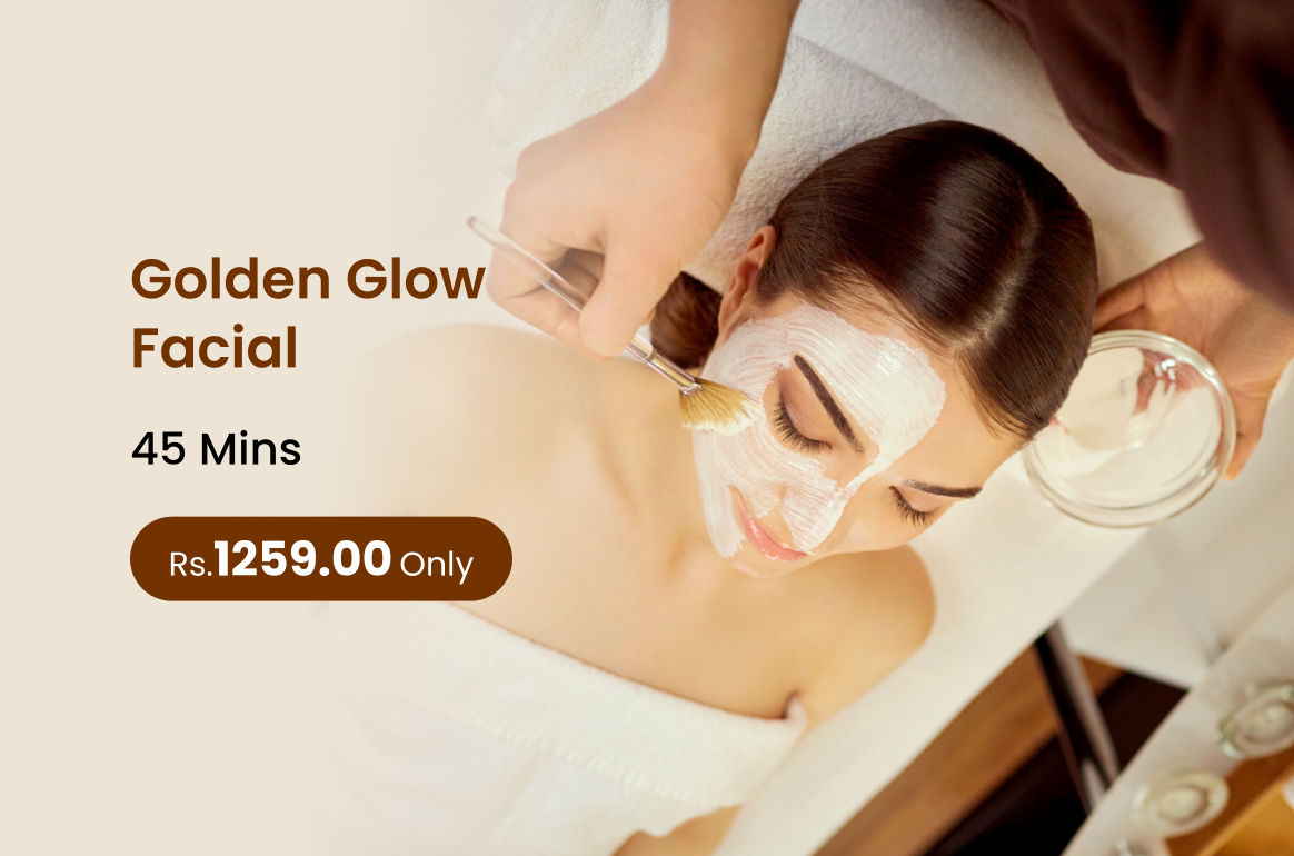 Golden Glow Facial deeply cleanses nourishes and brightens the skin enhancing natural radiance while leaving the face refreshed smooth and glowing.