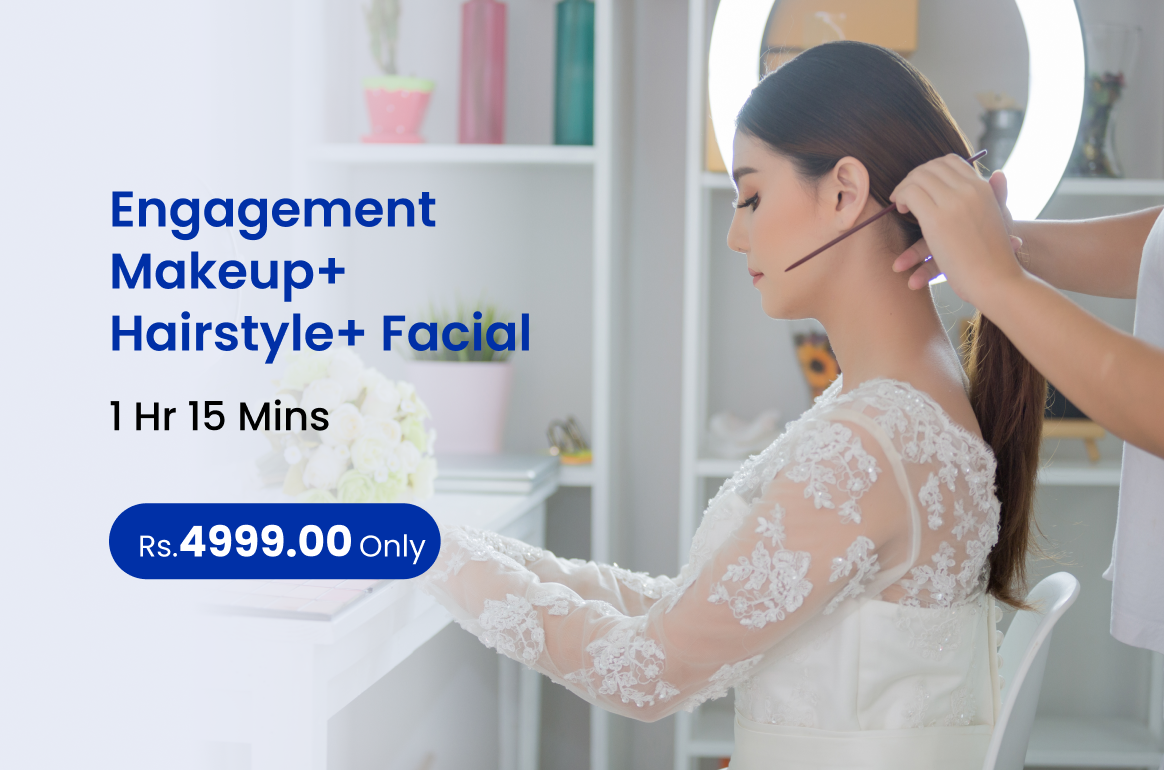 Elegant engagement makeup with a beautifully styled hairstyle to give you a radiant picture-perfect look for your special moment.