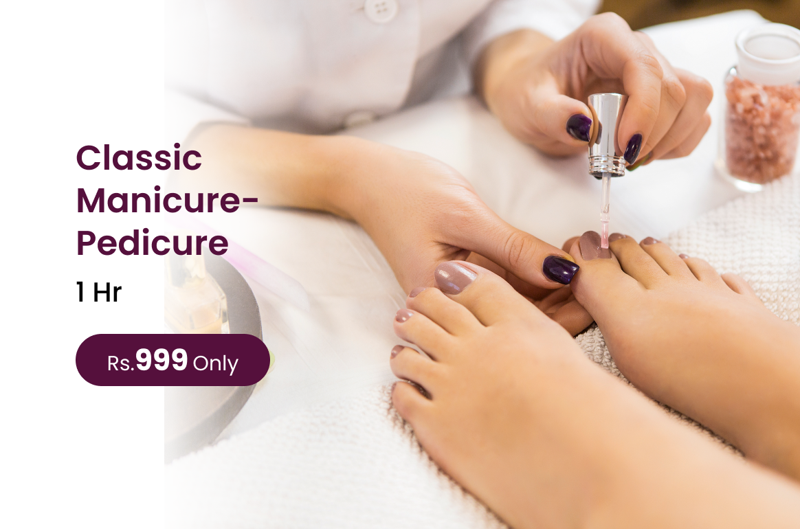Indulge in a refreshing Classic Manicure-Pedicure for clean nourished hands and feet with a polished natural finish.