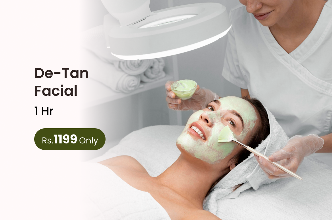 Restore your natural brightness with our De-Tan Facial designed to remove sun-induced dullness and revive clear healthy skin.