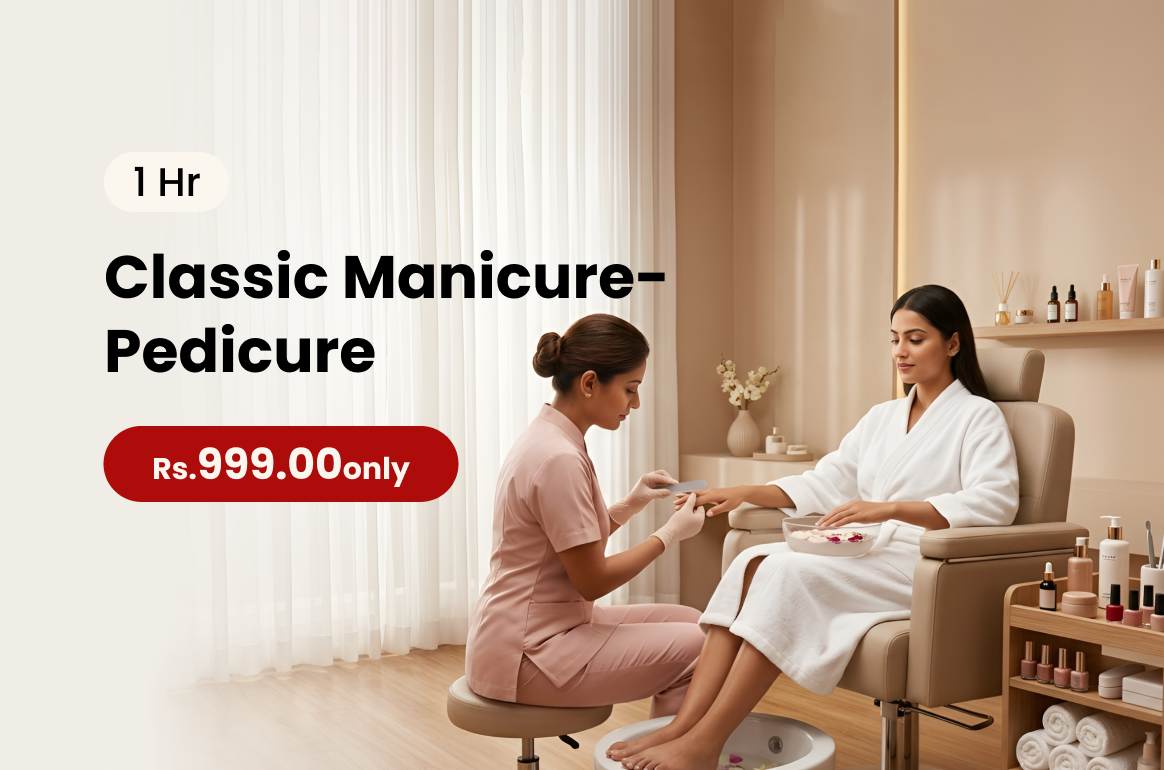 Classic Pedicure cleans exfoliates and nourishes feet leaving them soft smooth and refreshed.