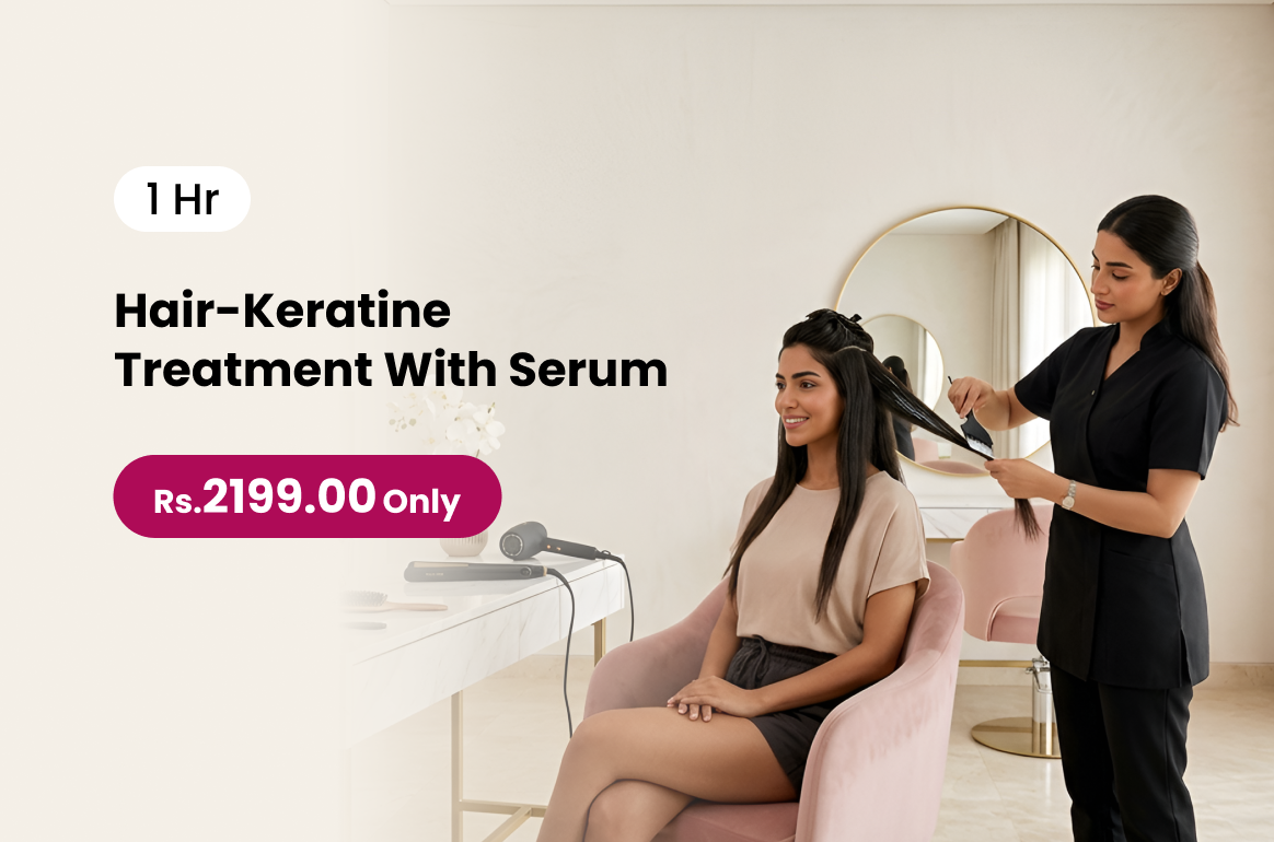 Hair Keratin Treatment with Serum smooths and strengthens your hair reducing frizz and adding long-lasting shine and softness.