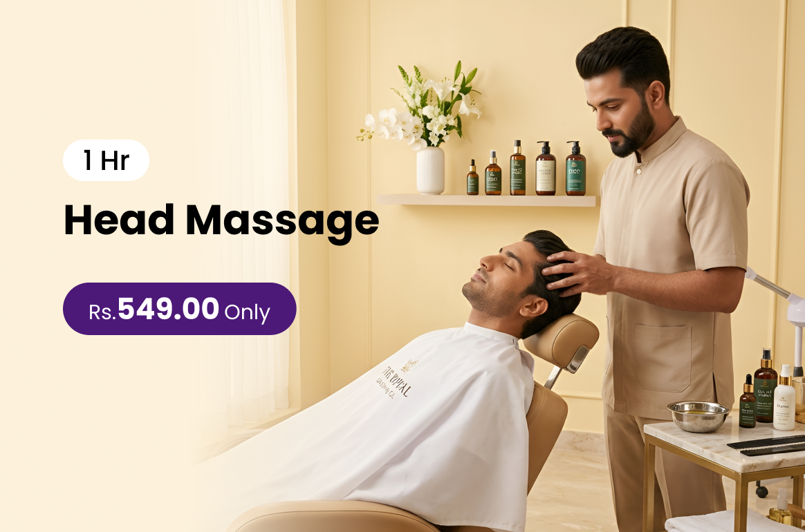 Head Massage relaxes the mind and soothes tension promoting stress relief and overall well-being.