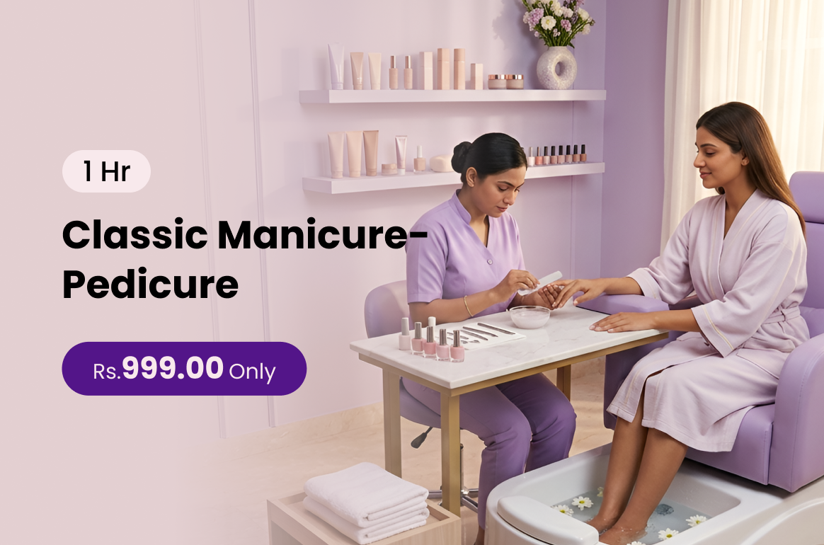 A Classic Mani-Pedi grooms and beautifies nails leaving hands and feet clean polished and refreshed.